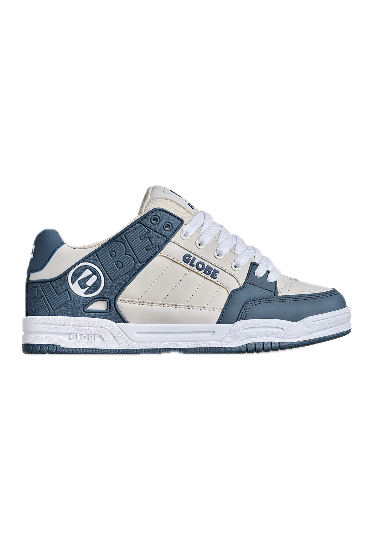 The Tilt in Blue/ Grey Globe’s classic heritage skate silhouette featuring a moulded TPR outside collar for support and durability, and S-Trac™ sole pattern for enhanced grip and board feel.